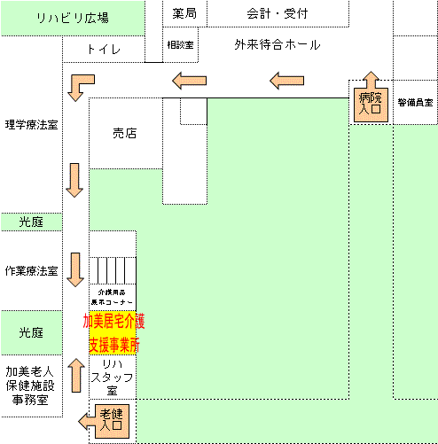 - 老健玄関を入り右折します。
